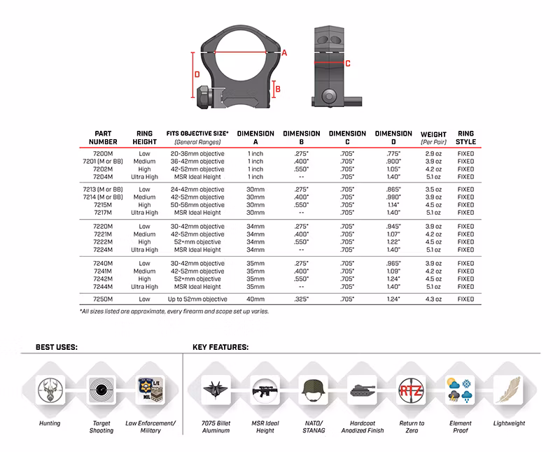 Warne ringar passande kikare med 34 mm tub. Ett mycket bra val för t.ex. din långhållsrigg.